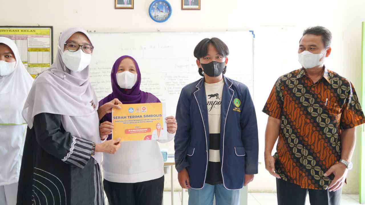 CIREBON, SC- Anggota DPR RI, Netty Prasetiyani Aher menyerahkan beasiswa Program Indonesia Pintar (PIP) secara simbolis kepada sejumlah peserta didik di Kota Cirebon, Rabu (20/7/2022).