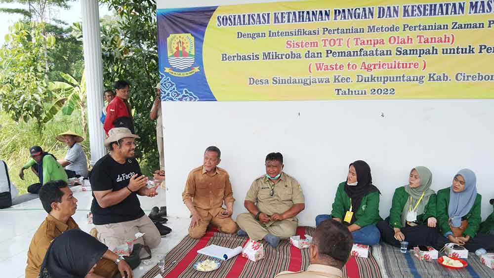 KABUPATEN CIREBON, SC- Aplikator Biokonsorsiomol mengadakan sosialisasi ketahanan pangan dan kesehatan masyarakat dengan intensifikasi pertanian metode pertanian zaman purba sistem TOT (Tanpa Olah Tanah) berbasis mikroba dan pemanfaatan sampah untuk pertanian (waste to agriculture) di Desa Sindangjawa, Kecamatan Dukupuntang, Kabupaten Cirebon, Selasa (19/7/2022).