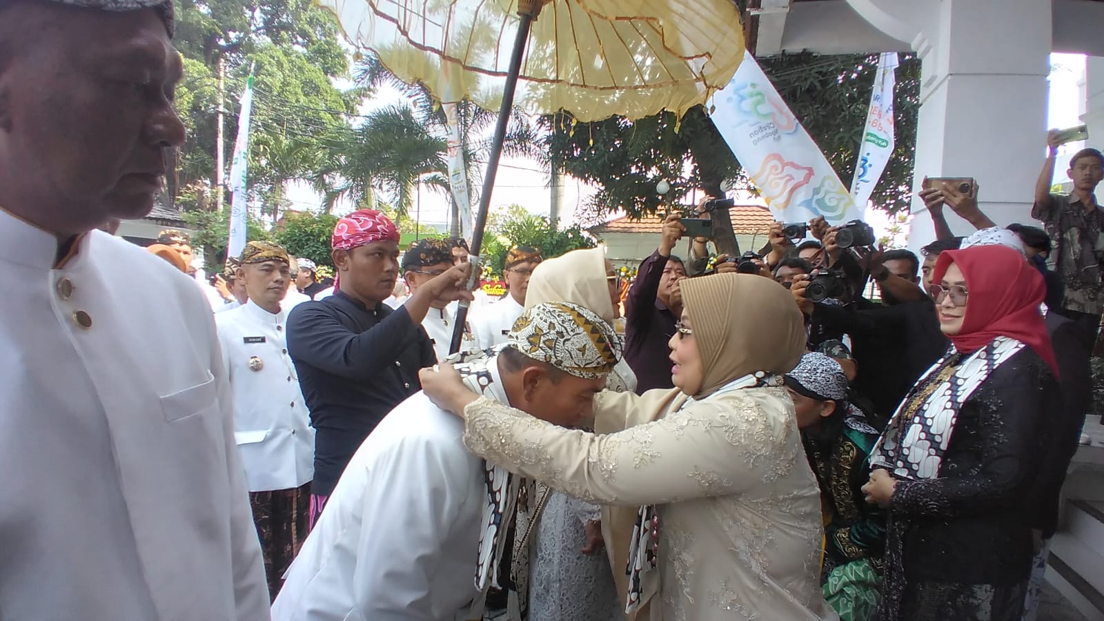 Pantauan Suara Cirebon, Sebelum memasuki gedung Griya Sawala, pimpinan DPRD Kota Cirebon termasuk Affiati menyambut rombongan Wali Kota dan Wakil Wali Kota Cirebon.