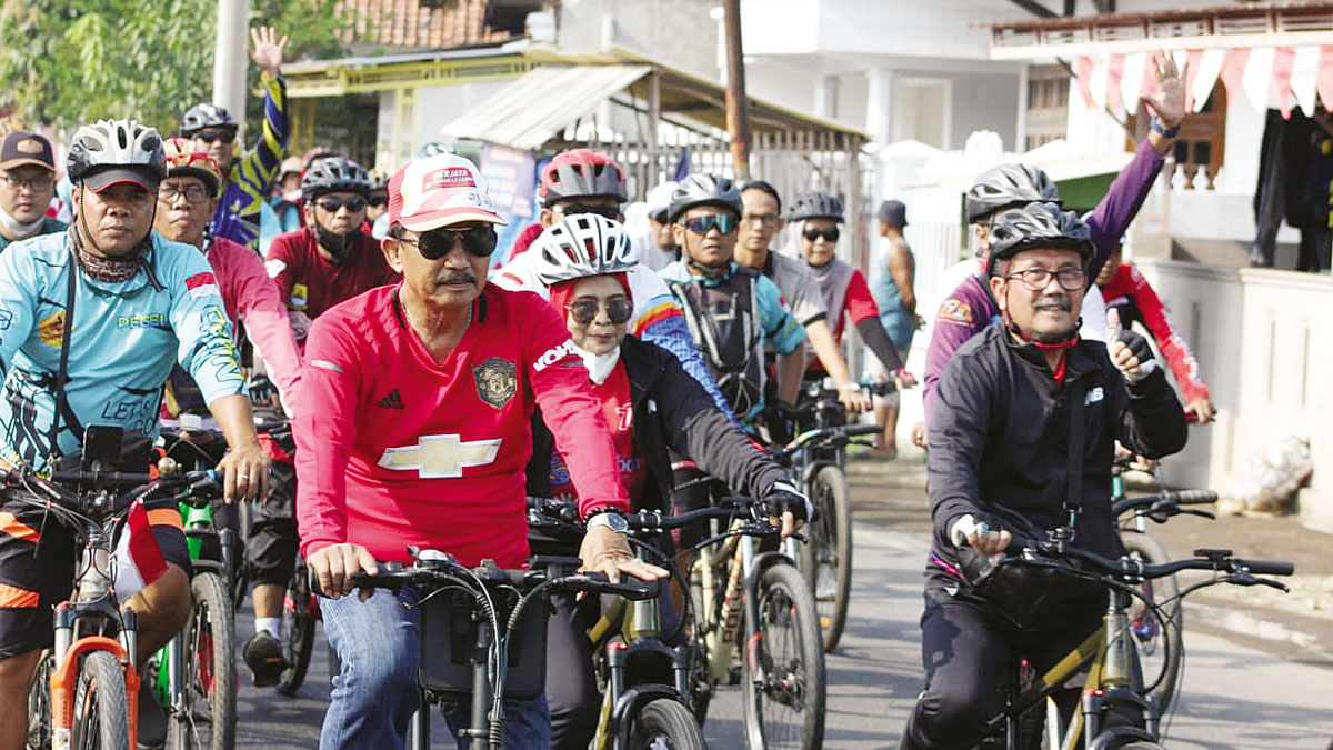 KABUPATEN CIREBON, SC- Ratusan orang ambil bagian dalam Gowes Sehat bersama Rakyat yang digelar Pemkab Cirebon dalam memeriahkan peringatan HUT ke-77 Kemerdekaan Republik Indonesia, Kamis (11/8/2022).