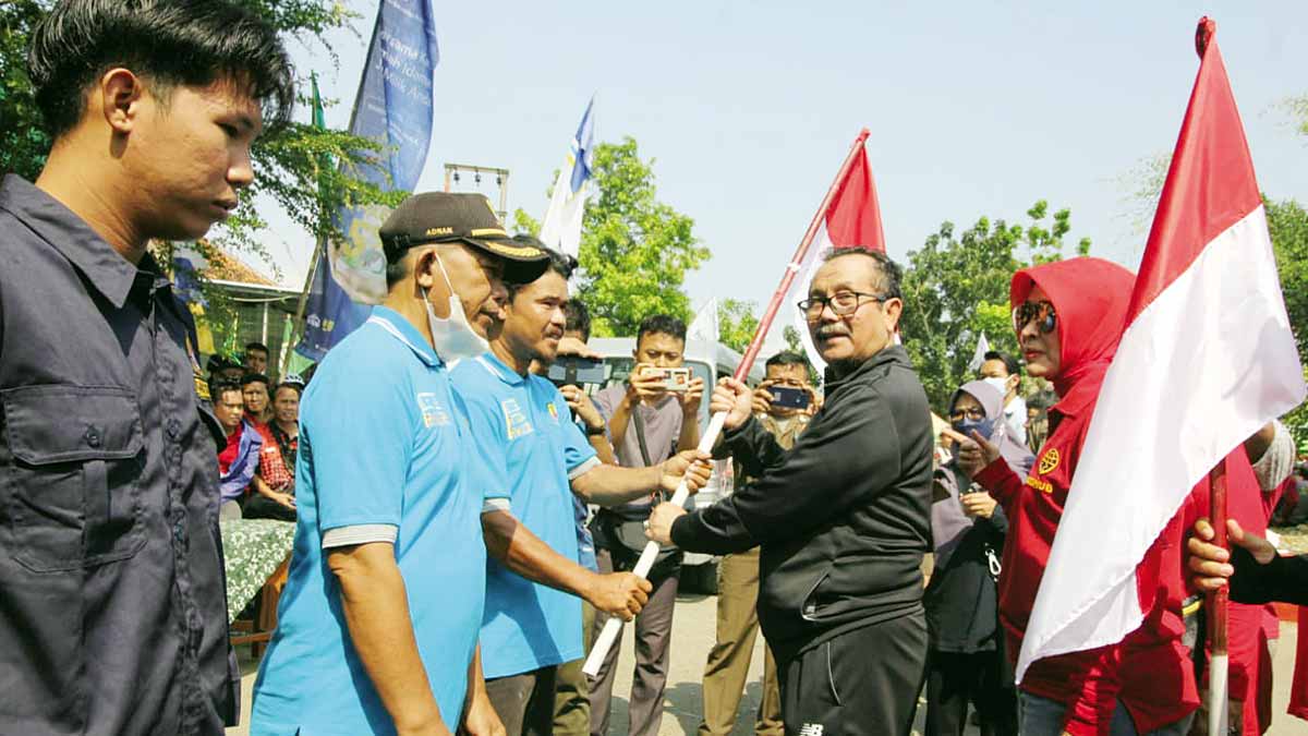 KABUPATEN CIREBON, SC- Bupati Cirebon, H Imron bersama Wakil Bupati Cirebon, Hj Wahyu Tjiptaningsih mencanangkan gerakan pembagian 10 juta bendera merah putih untuk dipasang di rumah-rumah warga.