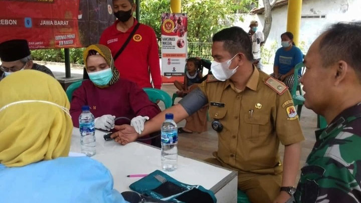 KABUPATEN CIREBON, SC- Dalam percepatan pandemi Covid-19 Badan Intelijen Negara (BIN) melaksanakan vaksinasi bagi warga Desa Keraton, Kecamatan Suranenggala, Kabupaten Cirebon yang bekerjasama dengan Koramil dan pemerintah desa setempat, Senin (29/8).