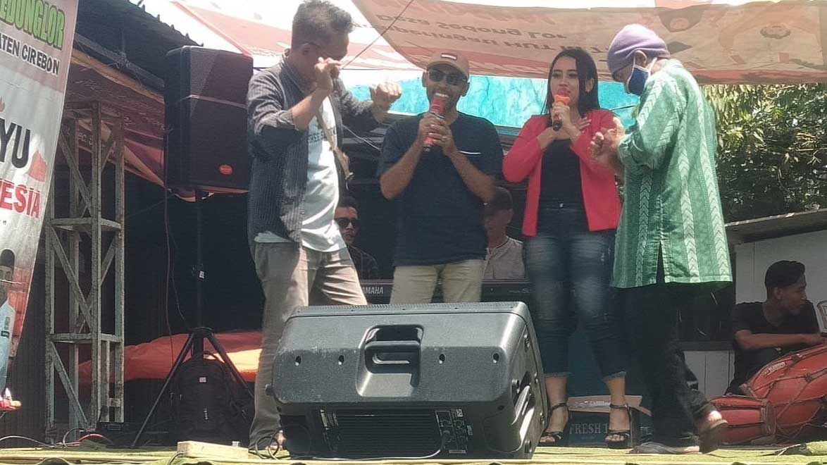 KABUPATEN CIREBON, SC- Pedagang di Pasar Sedong Lor, Kecamatan Sedong, Kabupaten Cirebon, tidak ingin ketinggalan dalam memeriahkan Hari Ulang Tahun (HUT) ke-77 RI. Mereka mengadakan kegiatan hiburan dangdut di halaman pasar setempat, Selasa (30/8/2022).