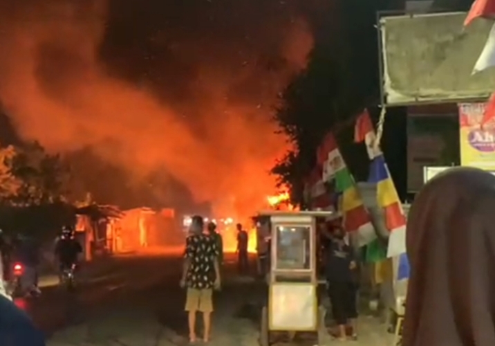 CIREBON, SC- Diduga akibat korsleting listrik, sebuah toko barang bekas sepeda samping mini market di Desa Bayalangu Lor, Kecamatan Gegesik Kabupaten Cirebon terbakar, Rabu (31/8/2022) petang.