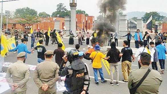 Mereka memprotes kebijakan pemerintah menaikkan harga BBM bersubsidi yang dilakukan beberapa hari lalu.