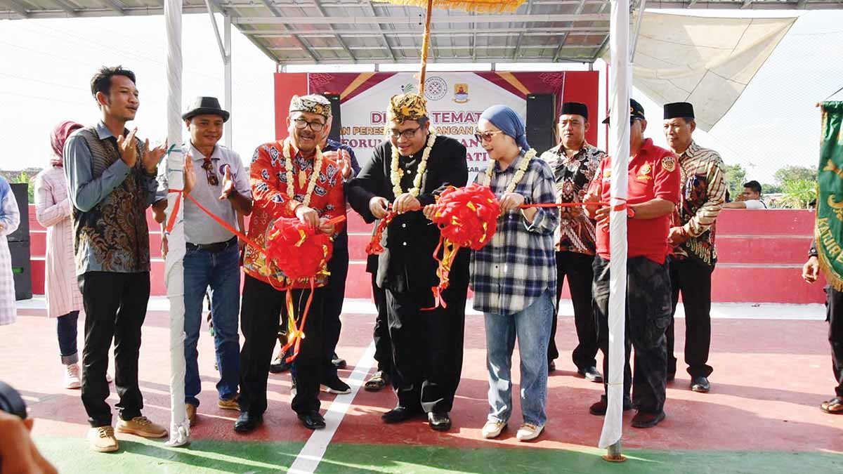 KABUPATEN CIREBON, SC- Bupati Cirebon, H Imron meresmikan lapangan serbaguna dan menjadi narasumber dalam dialog tematik yang digelar Forum Keserasian Sosial Mengger Jati Desa Dukuh, Kecamatan Kapetakan, Sabtu (10/9/2022).