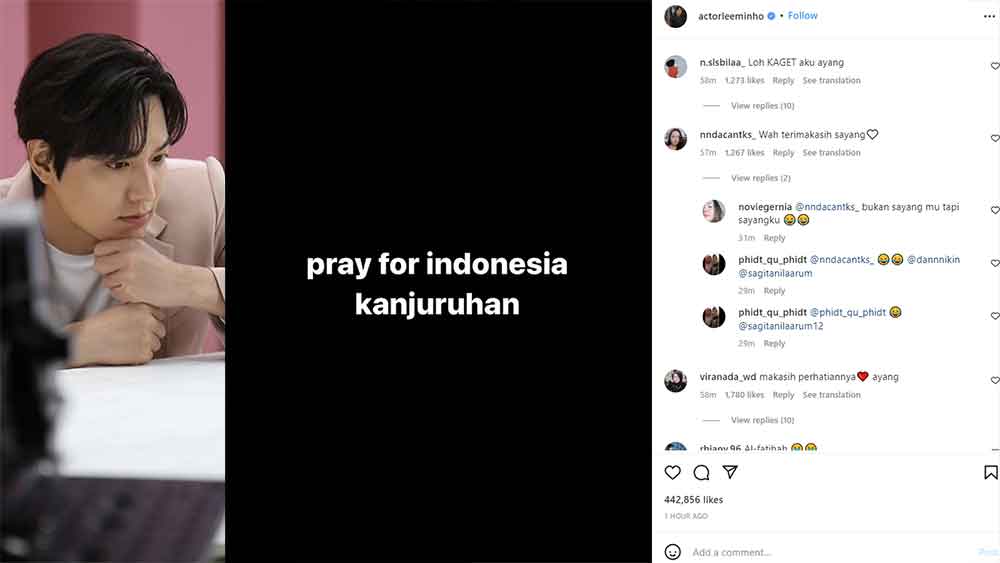 “pray for indonesia kanjuruhan,” tulis Lee Min Ho.