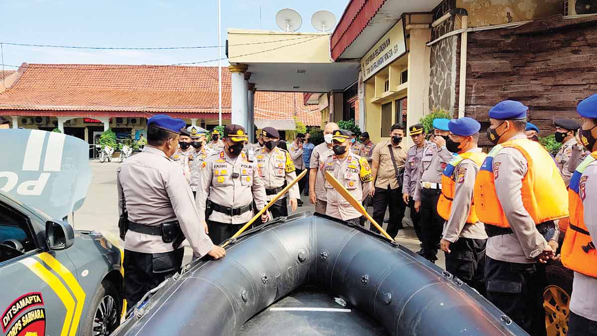 SUARA CIREBON – Polres Cirebon Kota (Ciko) menggelar apel pengecekan perlengkapan kesiapan tanggap darurat bencana di Makopolres setempat, Rabu (12/10/2022).