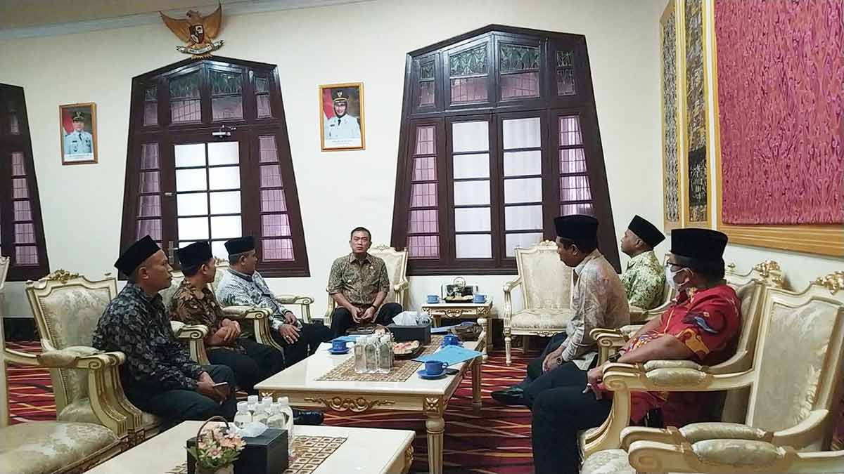 SUARA CIREBON – Wali Kota Cirebon Nashrudin Azis menerima audiensi pimpinan baru Badan Amil Zakat Nasional (Baznas) Kota Cirebon di ruangan Kanigara, Balai Kota Cirebon, Kamis (13/10/2022).
