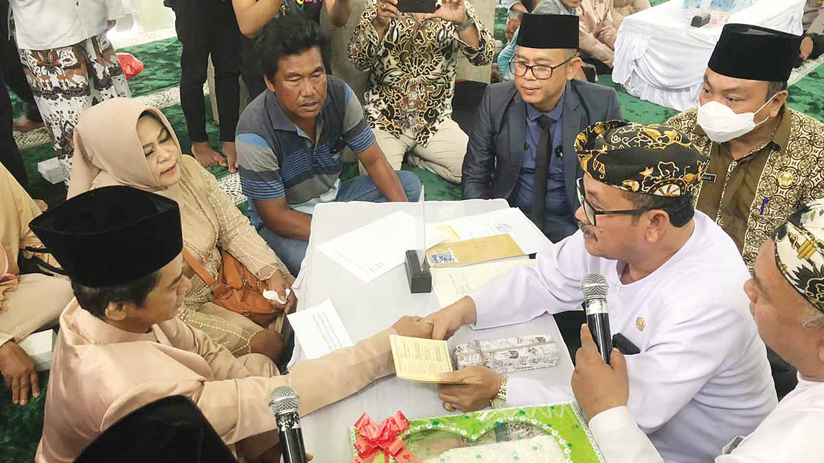 Pada nikah massal, peserta yang ikut memang tidak begitu banyak hanya sekitar enam pasangan pengantin. Yang menarik, enam pasang pengantin tersebut, rata-rata usianya sudah tidak lagi muda.
