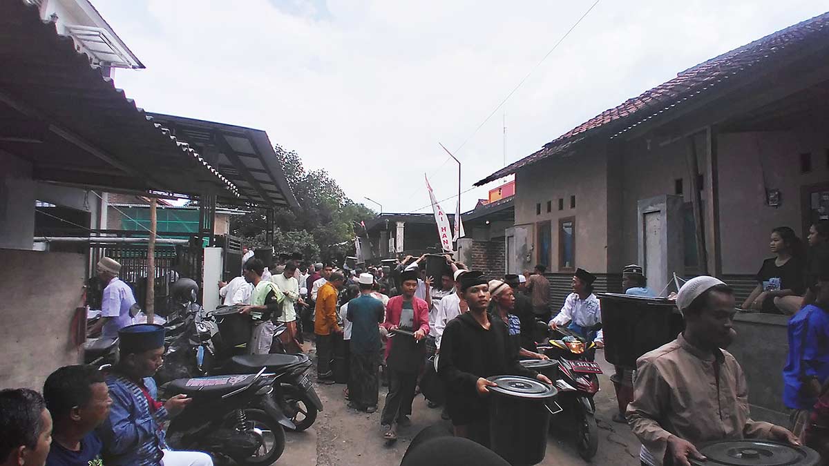 “Setelah itu pemilik rumah akan membagikan bingkisan berisi kebutuhan bahan pokok seperti beras, minyak, dan lainnya,” kata Kang Miftah.