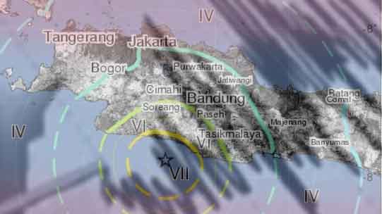 Pusat gempa tektonik ini berada pada koordinat 7.7 Lintang Sselatan (LS) dan 106.88 Bujur Timur (BT).