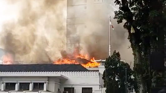 Dalam video yang beredar, diambil dari gedung bertingkat tak jauh dari Balai Kota Bandung, sepertinya api masih belum bisa dijinakan.