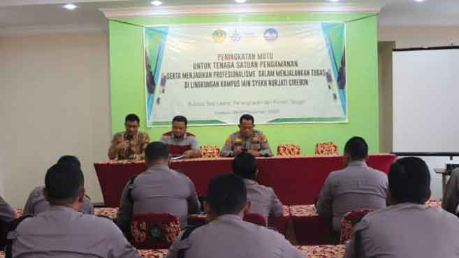 SUARA CIREBON – IAIN Syekh Nurjati Cirebon melalui bidang Subbag Tata Usaha, Perlengkapan dan Rumah Tangga mengadakan kegiatan Peningkatan Mutu untuk Satuan Pengamanan, Sabtu, (26/11/2022).