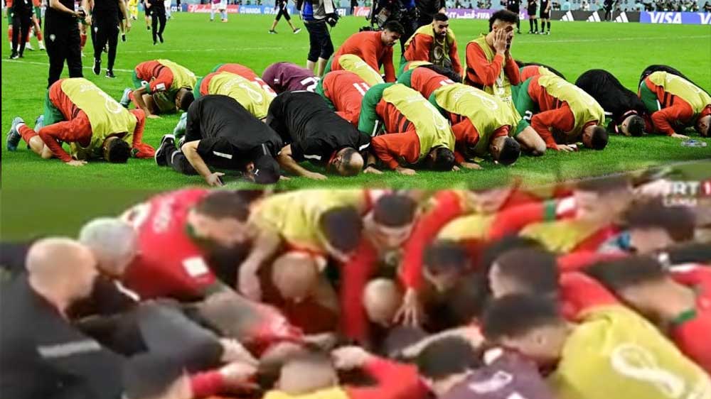 Tidak hanya itu, setelah berhasil menang atas Spanyol lewat adu pinalti ini, tim Maroko pun melakukan sujud syukur bersama-sama.