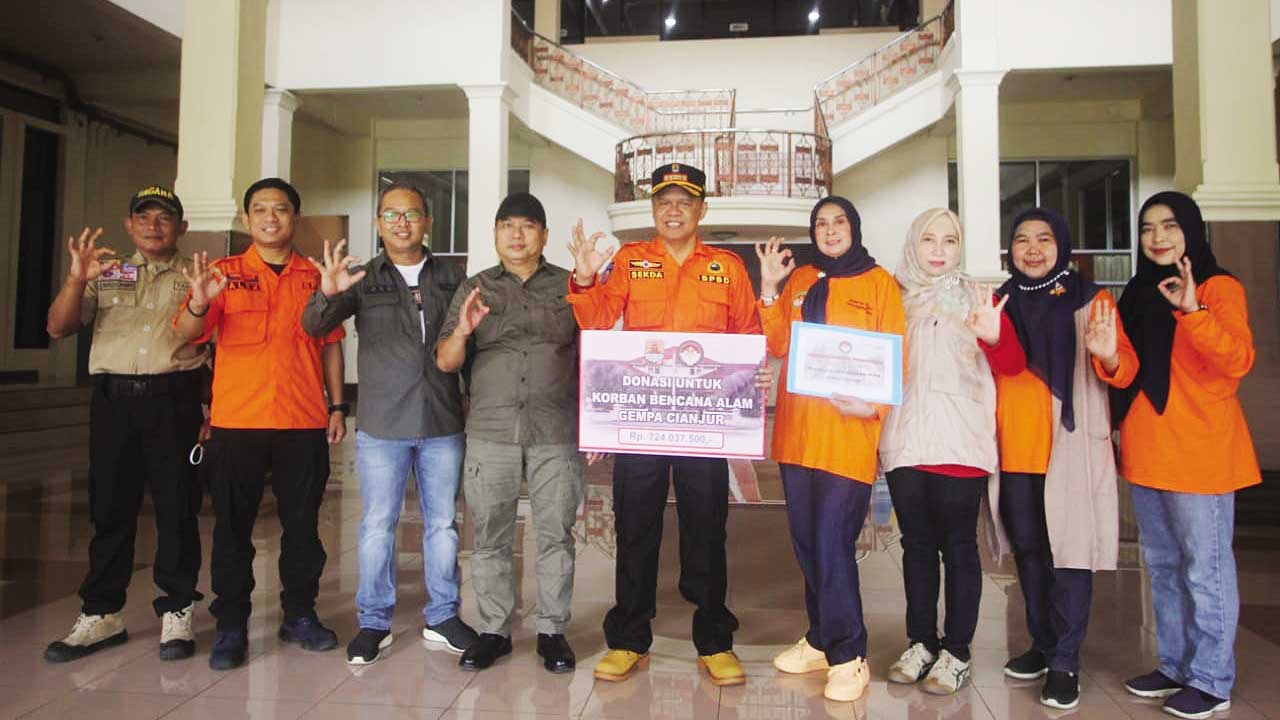 Donasi diamanatkan kepada Sekretaris Daerah (Sekda) Kabupaten Cirebon, Hilmy Riva’i, untuk diserahkan kepada Pemkab Cianjur.