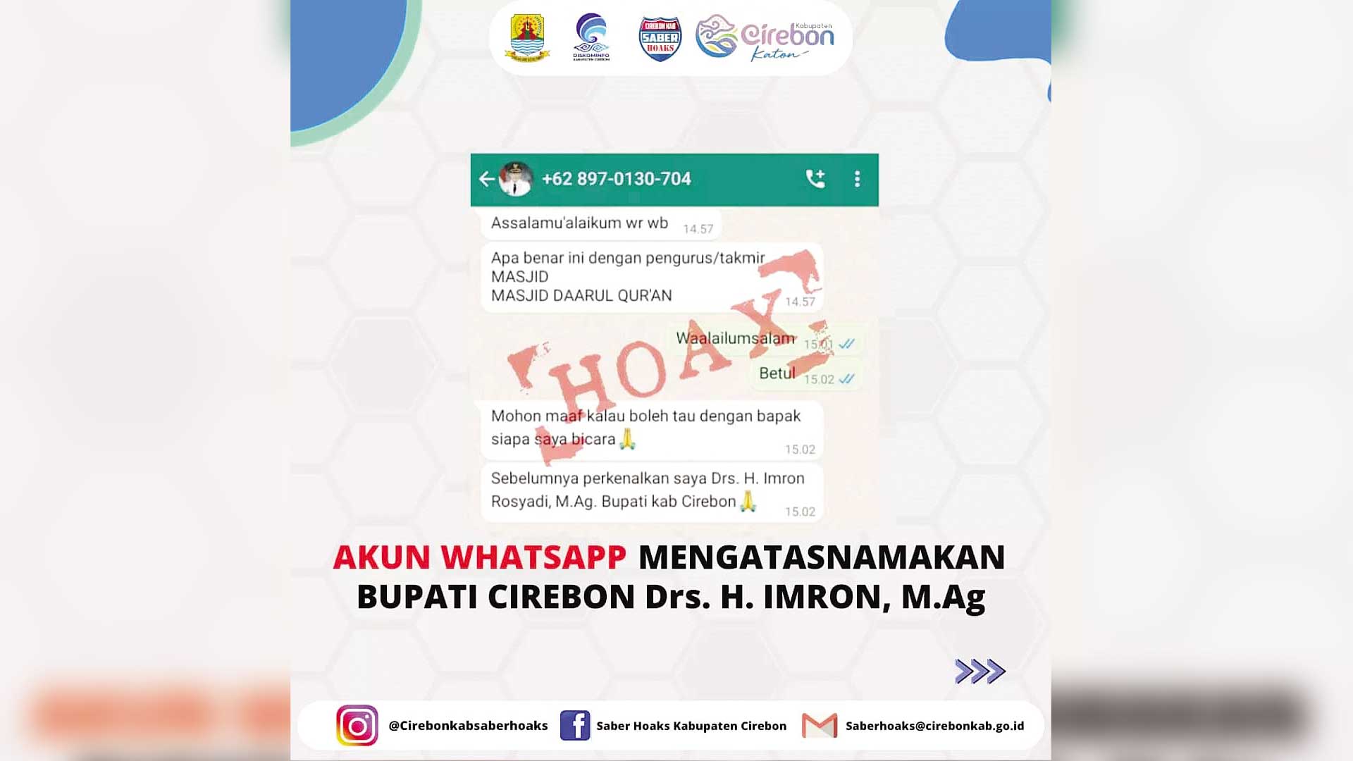 Terkait hal tersebut, Kepala Dinas Komunikasi dan Informatika (Diskominfo) Kabupaten Cirebon, Nanan Abdul Manan menegaskan, nomor WhatsApp yang mengatasnamakan bupati tersebut, dipastikan bukan milik Bupati Cirebon, H Imron.