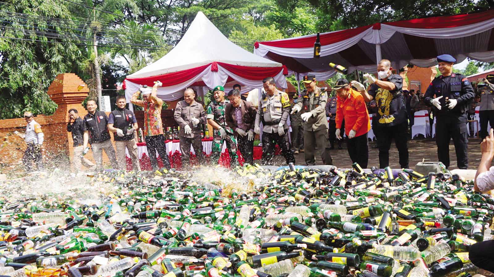 Menurut Arif, jumlah miras yang dimusnahkan mencapai 11.270 botol dari berbagai merek dan 2.350 botol ciu serta botol tuak.