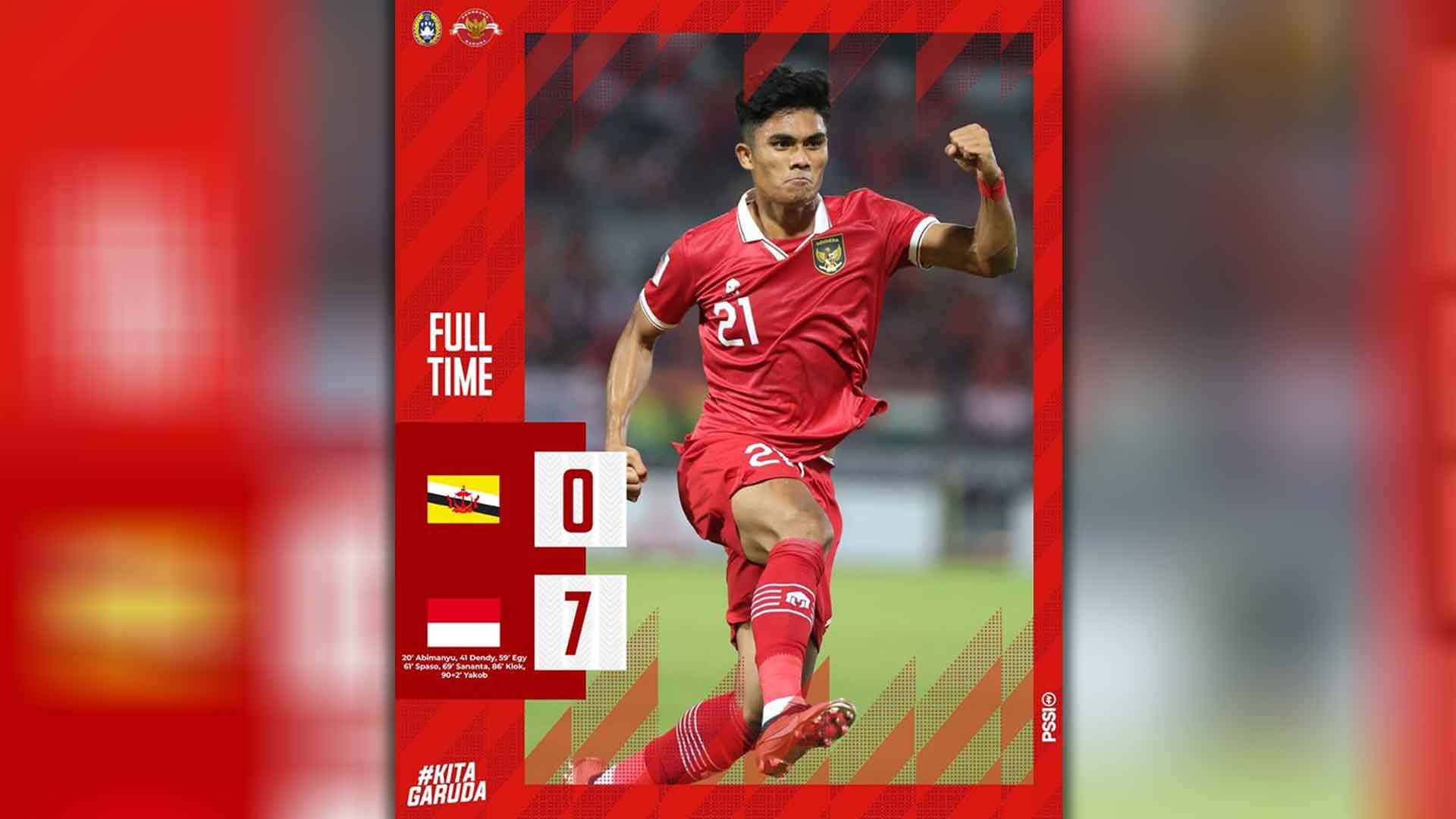 Berikut pencipta 7 gol Timnas Indonesia ke gawang Brunai Darussalam :
