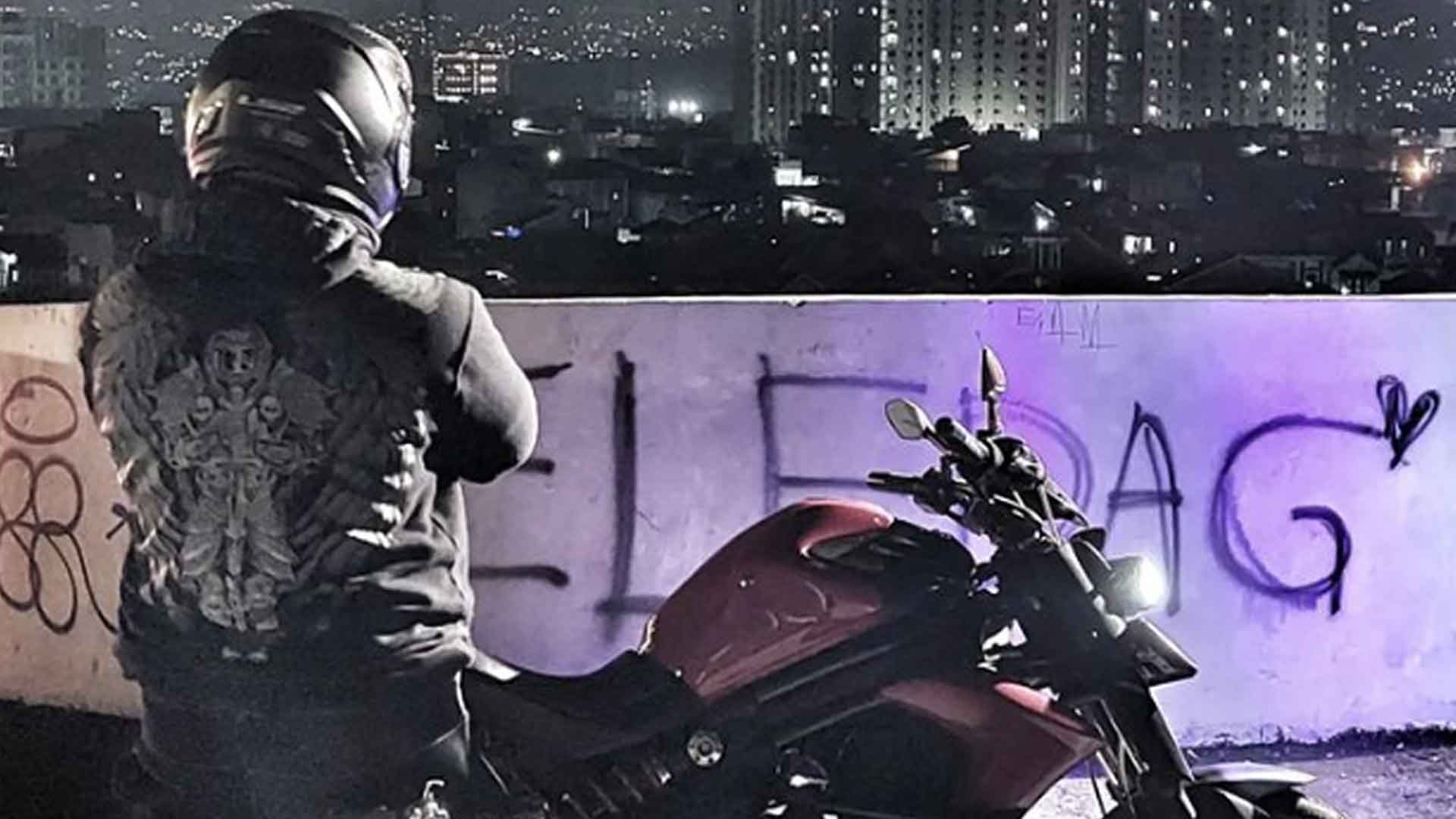 Kang Murad mengendarai sepeda motor Yamaha N-Max hitam, Ujang mengendarai motor trail, dan Cecep mengendarai sepeda motor Yamaha Vixion merah.