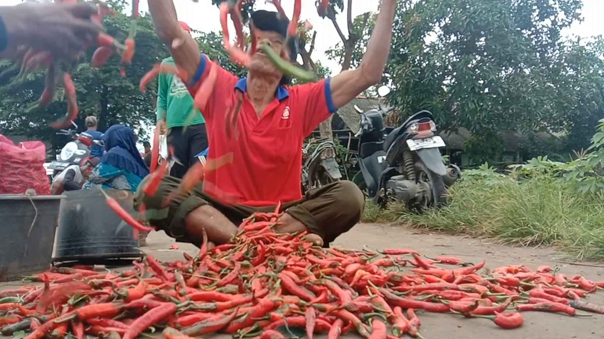 Untuk meluapkan kekesalannya, para petani pun membuang cabe merah hasil panen di jalan.