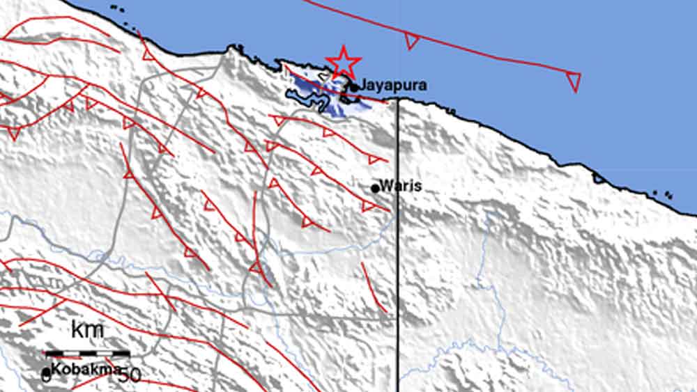 Gempa di Jayapura Papua tersebut tersebut berada di darat 21 km tenggara Jayapura, Papua. Tepatnya terjadi di kedalaman 20 km.