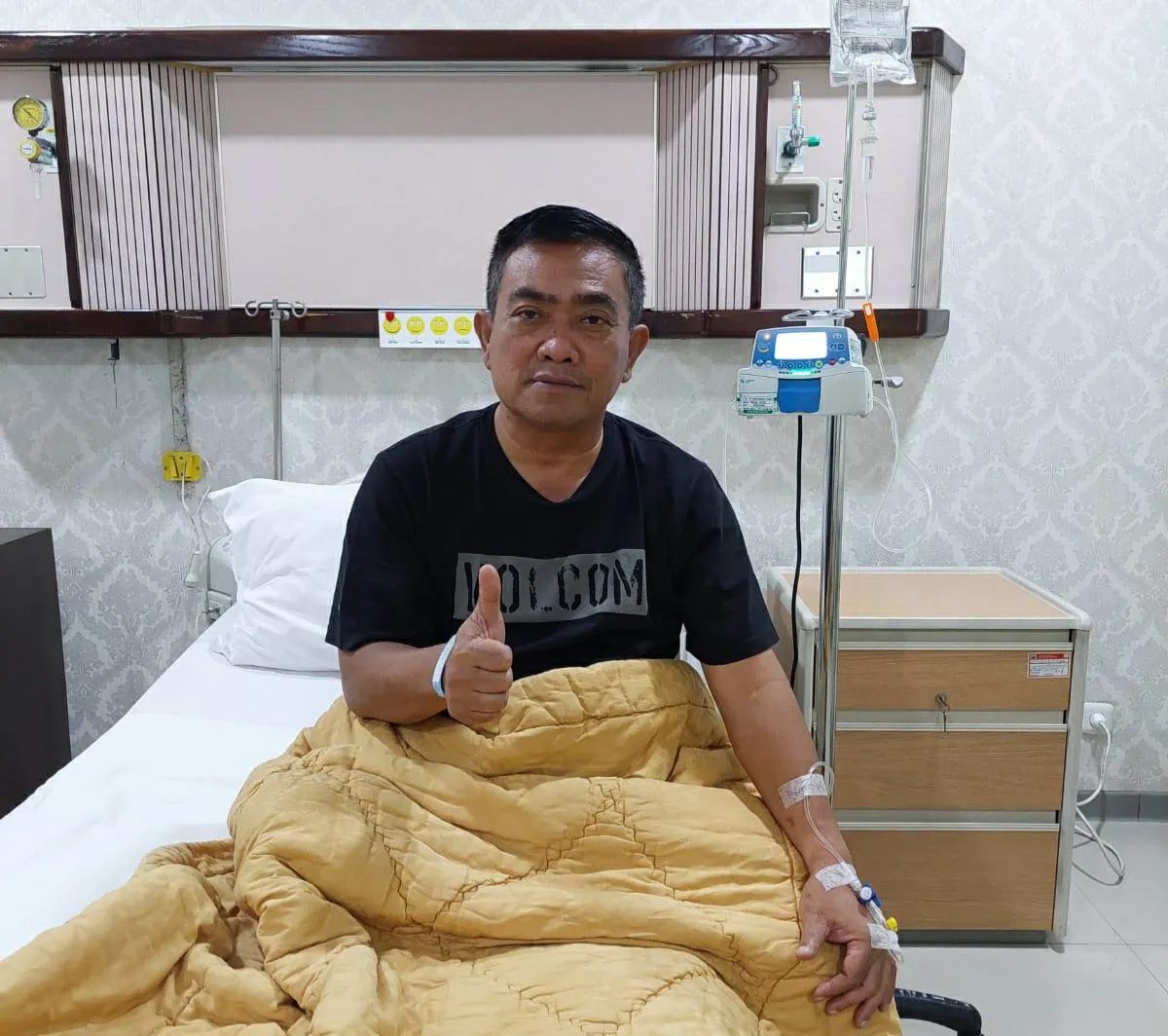 Dalam berita itu, terlihat foto Nashrudin Azis sedang berada di atas bed RSPAD Gatot Subroto dengan tangan terpasang selang infus.