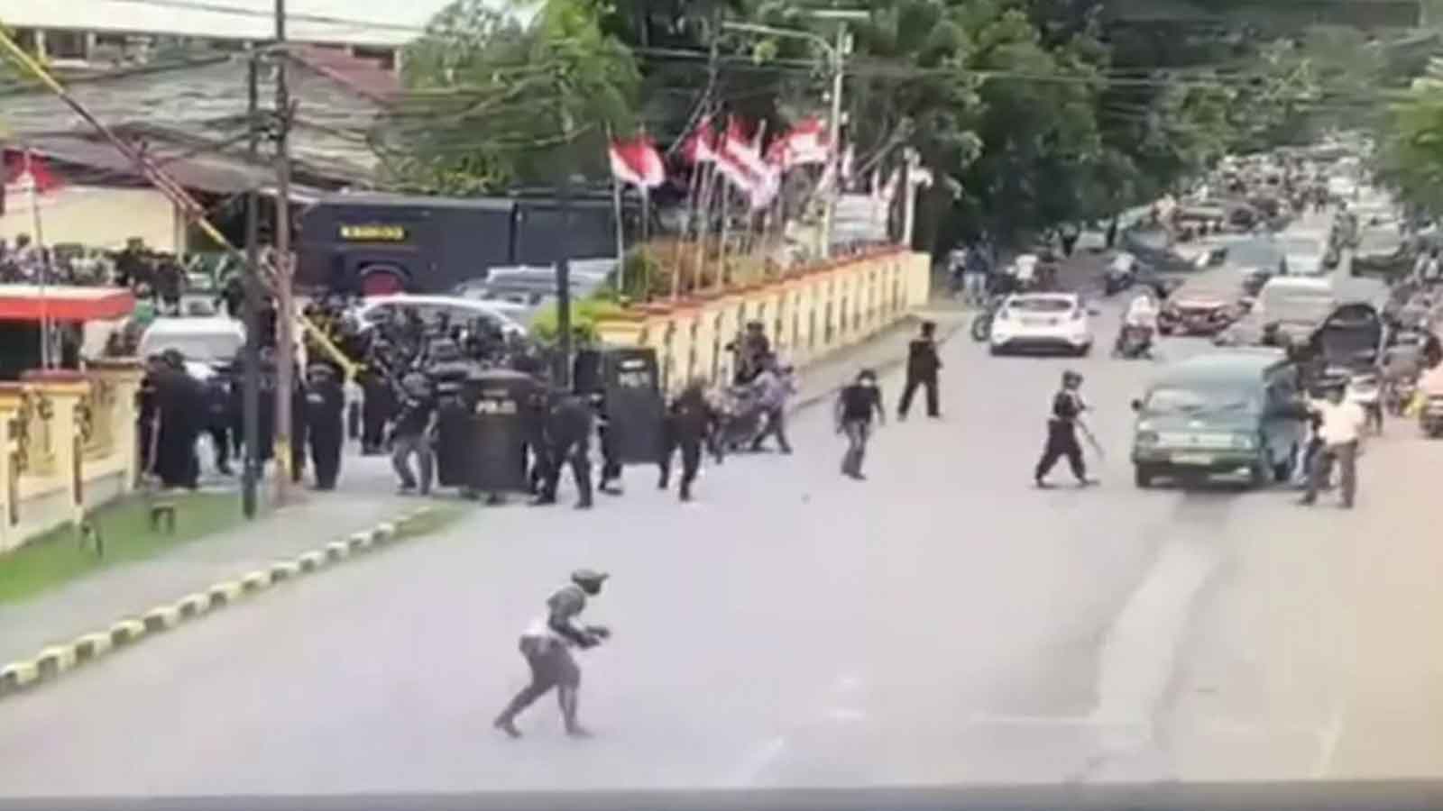 Dijelaskan, setelah insiden protes dan pelemparan, dua orang sempat diamankan. Kini kondisinya berangsur normal dan kondusif.