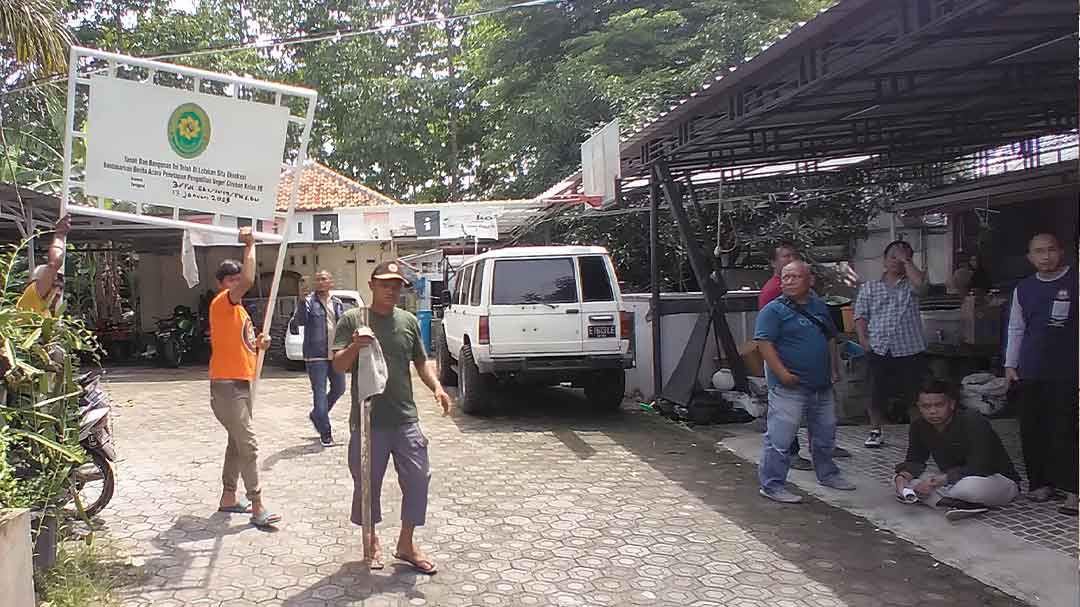 Pasalnya, plang eksekusi yang akan dipasang bukan plang yang telah disiapkan pihak PN Cirebon. Uniknya, pada plang tersebut, terpampang lambang pengadilan.
