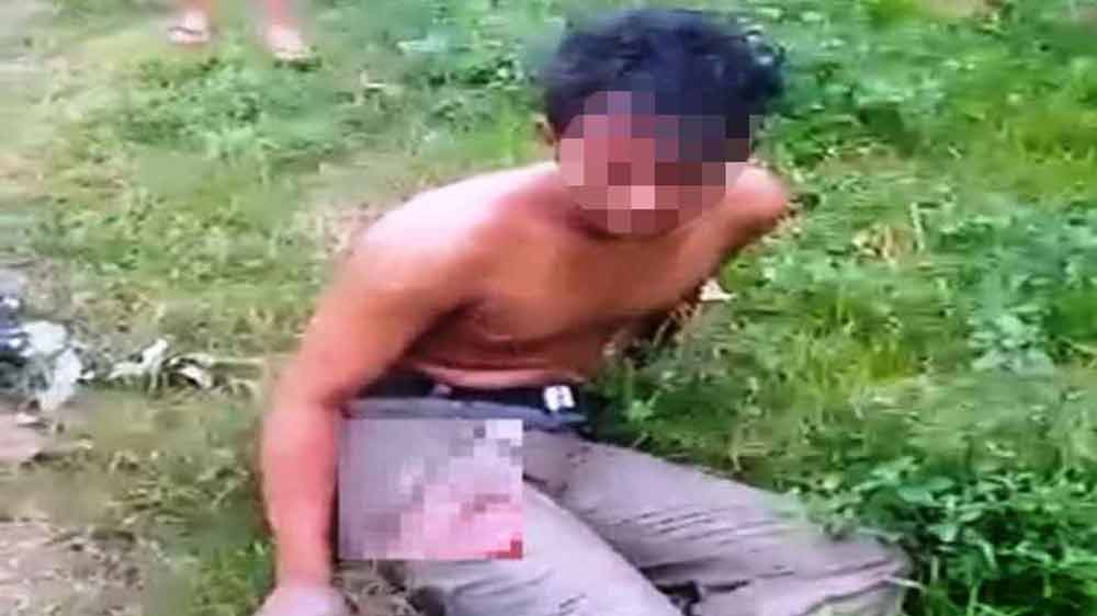 Dari video yang beredar di WhatsApp, terlihat seorang siswa yang masih menggunakan celana panjang abu-abu terkapar di parit. Dari celananya yang sobek terlihat luka menganga karena sabetan senjata tajam.