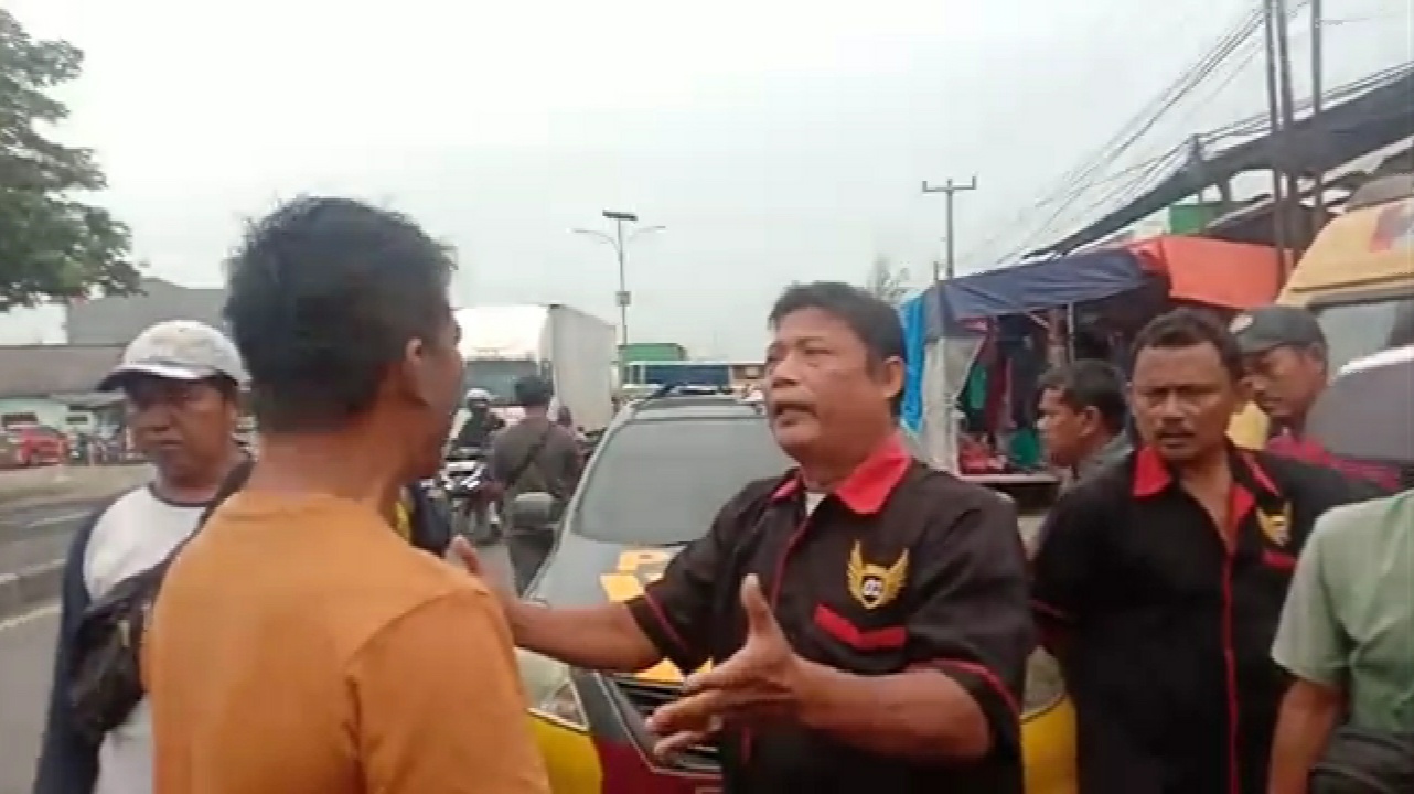 SUARA CIREBON – Sejumlah sopir angkot dari trayek berbeda terlibat adu mulut di Jalan pantura Arjawinangun, tepatnya di depan Pasar Sandang Tegalgubug, Kecamatan Arjawinangun, Kabupaten Cirebon, Sabtu, 18 Ferbuari 2023.