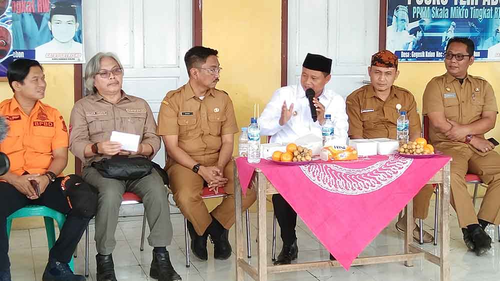 Bersama Dinas Tanaman Pangan dan Holtikultura Jabar, Sumber Daya Air (SDA) Jabar dan Balai Besar Wilayah Sungai (BBWS) Cirebon, Wagub Uu menjawab keluhan para petani di Balai Dusun Pulorancang, Desa Gegesik Kulon, Kecamatan Gegesik, Kabupaten Cirebon, Senin, 20 Februari 2023.