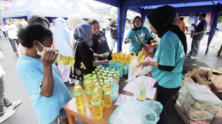 “Disini komoditas pangan yang paling diserbu warga adalah beras dan minyak goreng. Selain itu juga ada yang menjual makanan ringan dan bahan lainnya, seperti gula, kecap, hingga garam,” ujarnya.