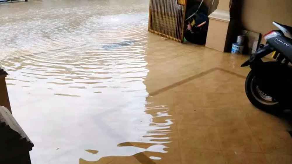 Rembesan air pada Senin pagi ini, menurut warga yang terparah dalam 10 tahun terakhir. Biasanya, air merembes masuk lewat nut keramik hanya setinggi 1 sentimeter, ini sudah lebih dari 2 sentimeter.