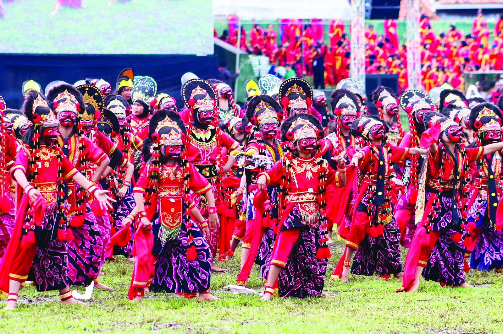 Menteri Koordinator Pembangunan Manusia (PMK), Muhadjir Effendi, Gubernur Jawa Barat, Ridwan Kamil, dan ribuan pasang mata lainnya terpukau melihat penampilan ratusan penari topeng kelana ini.