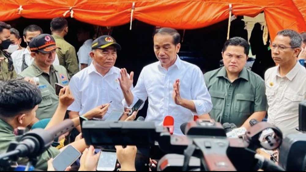 Presiden Jokowi mengunjungi lokasi kebakaran di Depo Pertamina Plumpang, Minggu, 5 Maret 2023, bersama Menko PMK, Muhadjir Effendy dan Meneg BUMN, Erick Thohir. Ikut pula mendampngi, Pj Gubernur DKI Jakarta, Heru Budi Hartono.