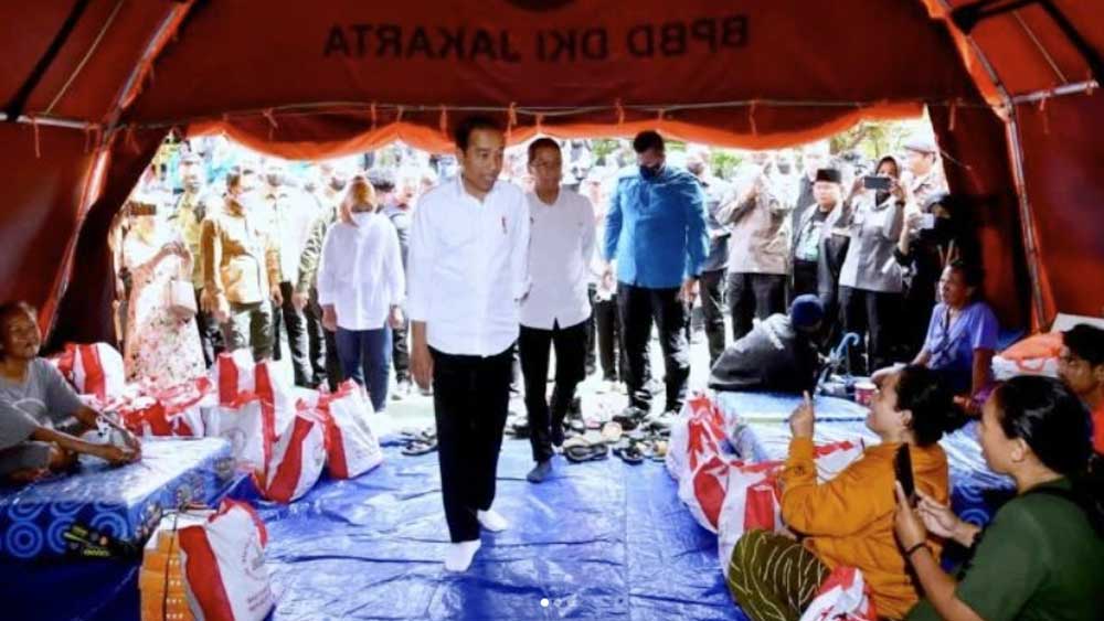 Didampingi Pj Gubernur DKI Jakarta, Heru Budi Hartono, Presiden Jokowi sempat memasuki tenda untuk menemui para pengungsi korban kebakaran Depo Pertamina Plumpang.