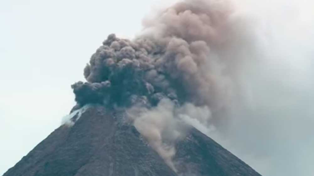 Erupsi Merapi ditandai semburan wedhus gembel atau awan panas ke angkasa setinggi sekitar 1 kilometer.
