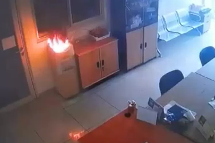 Terlihat, saat api berkobar membakar galon kosong dari dispenser, ruangan masih dalam keadaan kosong tanpa ada orang satupun.