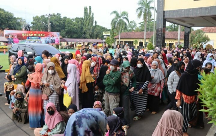 Antusiasme ribuan masyarakat telah memadati halaman Mapolresta Cirebon dalam bazar murah Ramadan sejak pagi.
