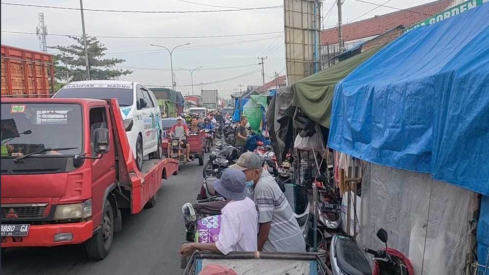SUARA CIREBON – Pasar tumpah Tegalgubug yang berada di jalur Pantura Arjawinangun Kabupaten Cirebon menjadi salah satu titik kemacetan setiap tiba musim mudik lebaran.