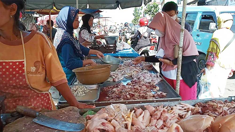 “Kalau daging ayam harganya sekarang Rp 34.000. Ada kenaikan Rp 2.000 dibanding harga normal,” tutur Fatimah (52 tahun), pedagang daging ayam di Pasar Sumber.