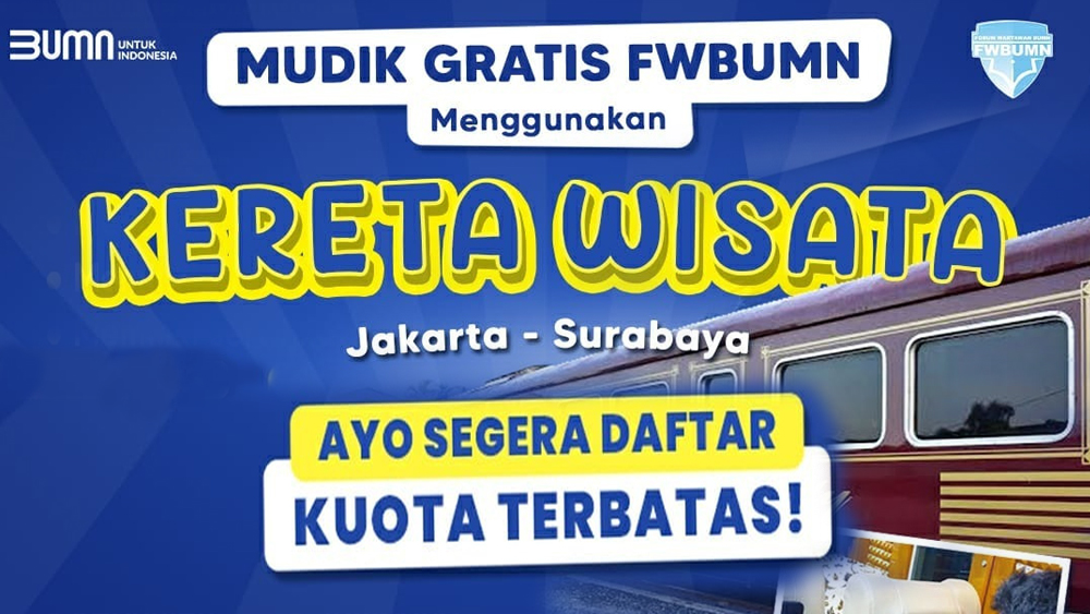 Yuk segera daftar. Kuota terbatas. Ini persyaratan yang harus dipenuhi untuk program mudik gratis FW BUMN menggunakan kereta wisata :