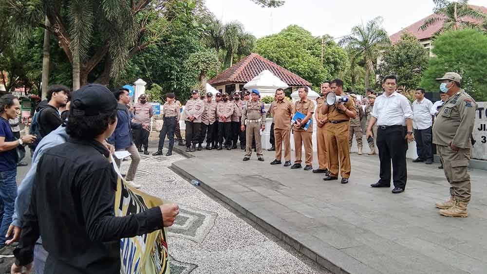 Mahasiswa berorasi mengritik lambatnya pembangunan di Kabupaten Cirebon. Menuntut Bupati Imron Rosyadi segera bertindak mengatasi keluhan dan keresahan masyarakat.