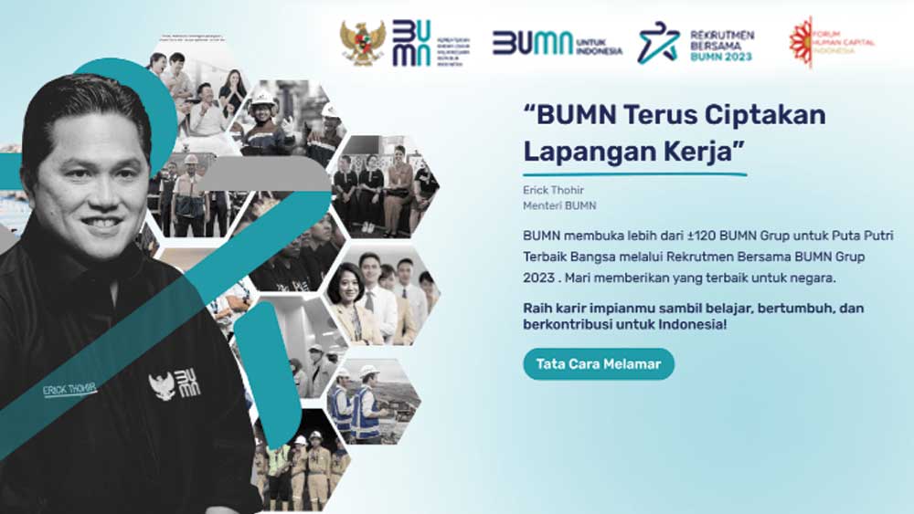 Ada ribuan job atau pos yang tersedia di puluhan BUMN yang membuka lowongan kerja melalui program Rekrutmen Bersama BUMN tahun 2023 ini. Yuk, segera rebut, dengan cara mengajukan lamaran atau mendaftar.