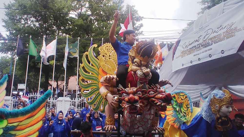 SUARA CIREBON – Ketika partai lain hanya konvoi biasa menggunakan roda dua atau roda empat menuju KPU Kota Cirebon untuk pengajuan bacaleg. Berbeda dengan lainnya, Partai Demokrat menggunakan becak dan burok dimulai dari kantor DPRD Kota Cirebon menuju KPU Kota Cirebon.