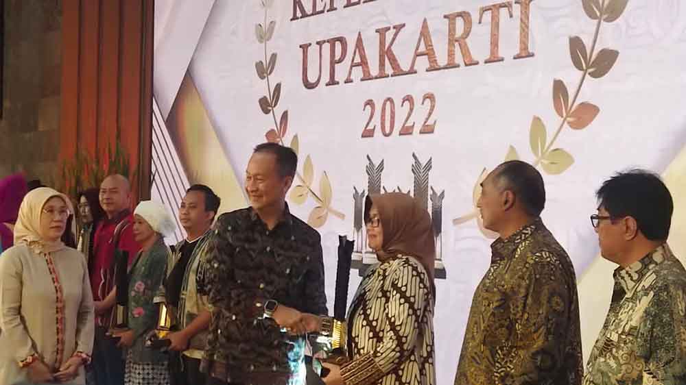 Penganugerahan Penghargaan Upakarti 2022 dilakukan oleh Menteri Perindustrian, Agus Gumiwang Kartasasmita di Kantor Kementerian Perindustrian Jakarta, Rabu, 10 Mei 2023.