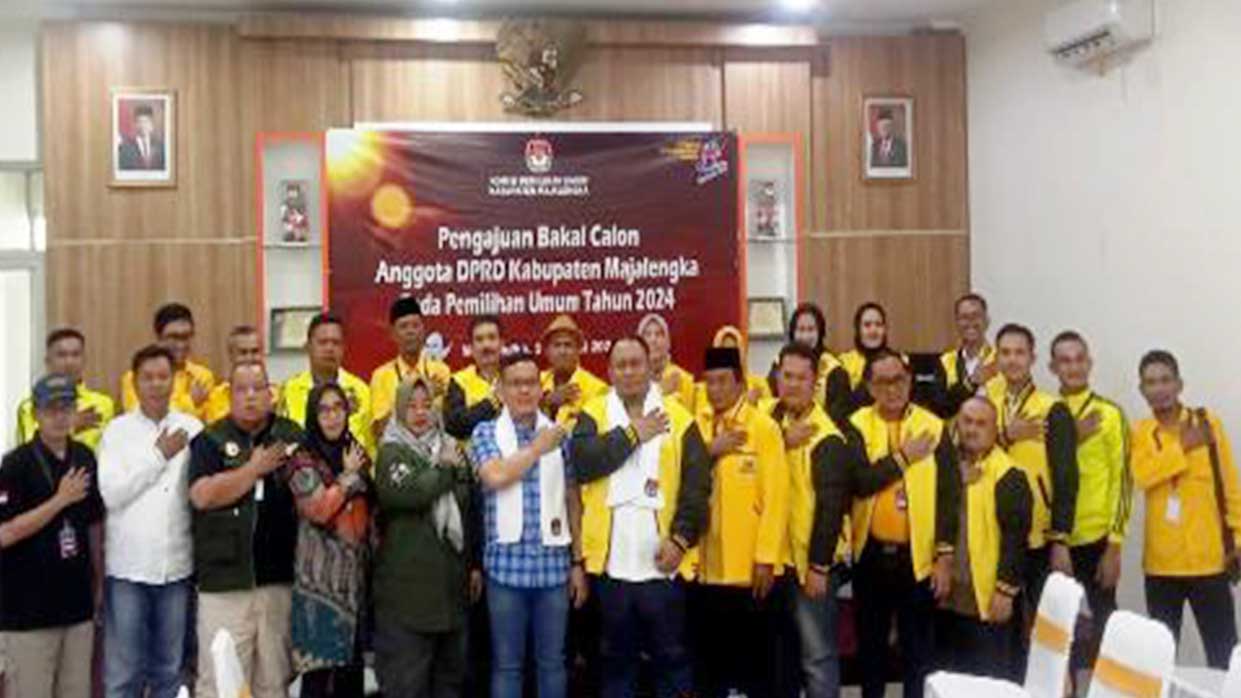 SUARA CIREBON – Partai Golkar Kabupaten Majalengka secara resmi menyerahkan daftar 50 orang bakal calon anggota legislatif (Bacaleg) ke Komisi Pemilihan Umum (KPU) Majalengka, Minggu, 14 Mei 2023.