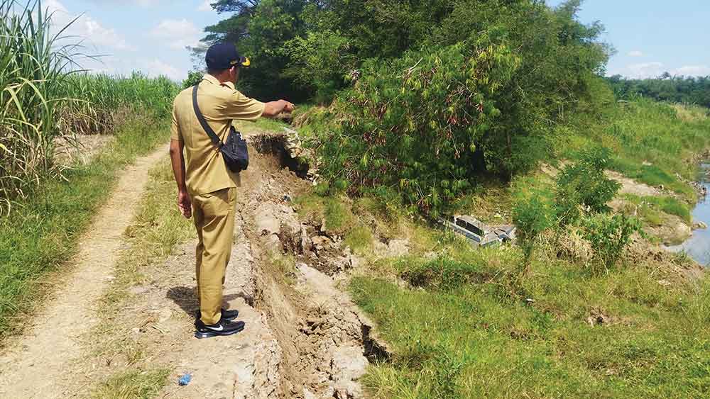 “Pascamelihat lokasi, rencana penanganan darurat yaitu akan disiapkan saluran tertutup pipa menepi di tanggul irigasi ini sehingga air bisa mengalir dari hulu ke hilir,” jelasnya.