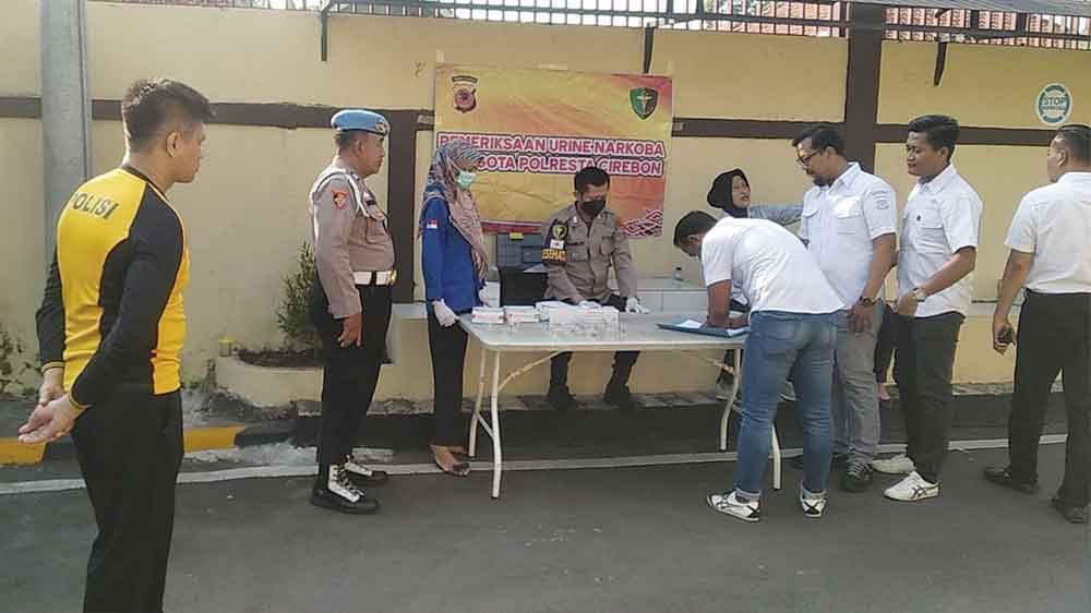 Kegiatan tes urine dilakukan oleh tim Dokkes Polresta Cirebon dengan menggunakan alat test strip 6 parameter.